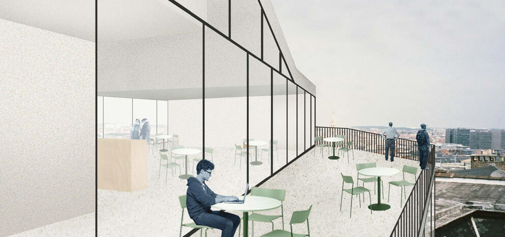 De Maatschappij voor Stedelijke Inrichting bouwt hier een hedendaags, moduleerbaar gebouw, met respect voor het omringende erfgoed. Het ontwerp van architect Pierre Hebbelinck is nauw afgestemd met Monumenten en Landschappen, de vzw Kunstberg en de aanpalende instellingen.