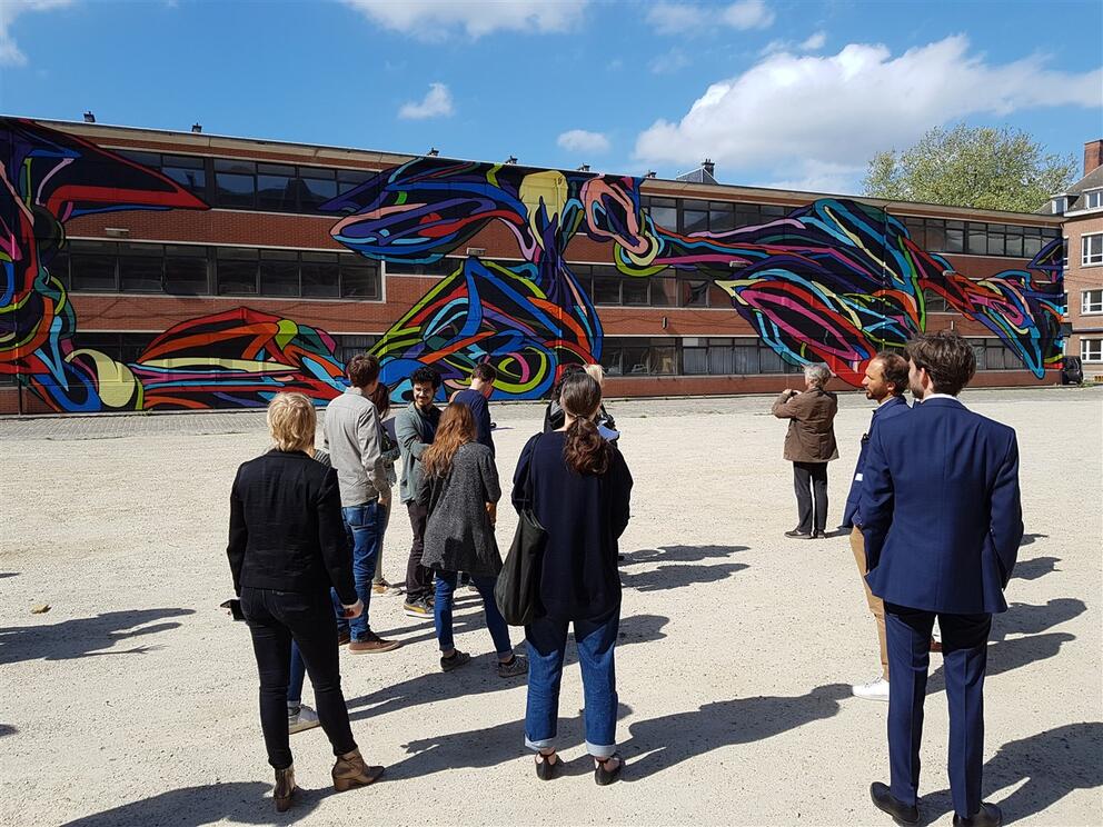 De directeur van de Maatschappij voor Stedelijke Inrichting (MSI) en het team van See U presenteerden vandaag de activiteiten van de eerste tijdelijke gebruikers van de voormalige Fritz Toussaintkazerne in Elsene aan de pers (foto’s hiernaast), in een preview op het openingsweekend van See U, het tijdelijke gebruik van Usquare.brussels, dat plaatsvindt op deze zaterdag 27 april 's avonds en zondag 28 april de hele dag.