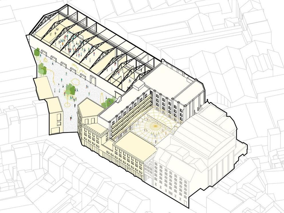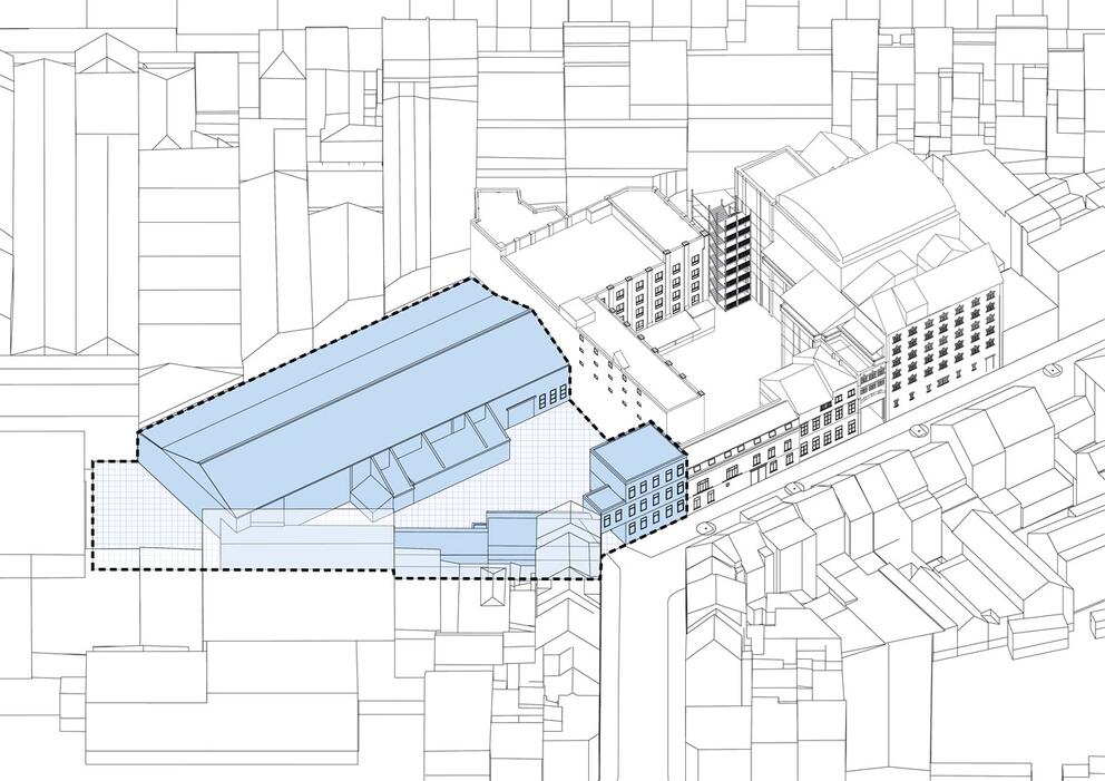 De studie die de MSI had besteld, definieerde een reeks ‘invariante inrichtingsprincipes’, zoals het behoud van de hangar van Manchester 13-15 omdat hier een grote diversiteit van programma’s onderdak kan vinden, het behoud van de L-vormige achterbouw van Manchester 17-19 vanwege het patrimoniale belang, de afbraak van enkele gebouwen, waaronder dat aan de straatkant van Manchester 17-19 en de wens om de twee sites met elkaar te verbinden en de binnenpleinen te openen naar de buurt.