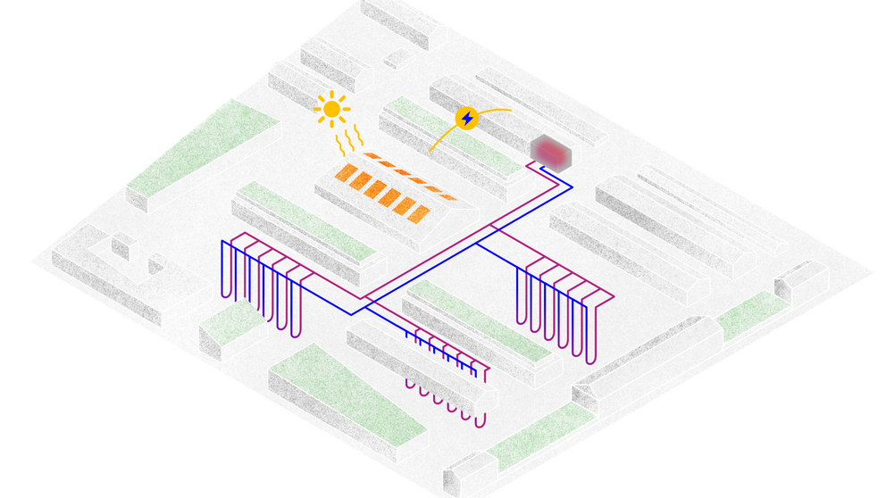 Om aan de verwarmings- en afkoelingsbehoeften van alle gebouwen op de site te voldoen, heeft de MSI, in nauwe samenwerking met de VUB en de ULB, een stedelijk warmtenet gebouwd dat wordt gevoed door 132 geothermische sondes en een nieuwe generatie warmtepomp (WP), ook CO2-WP genoemd (zie glossarium).