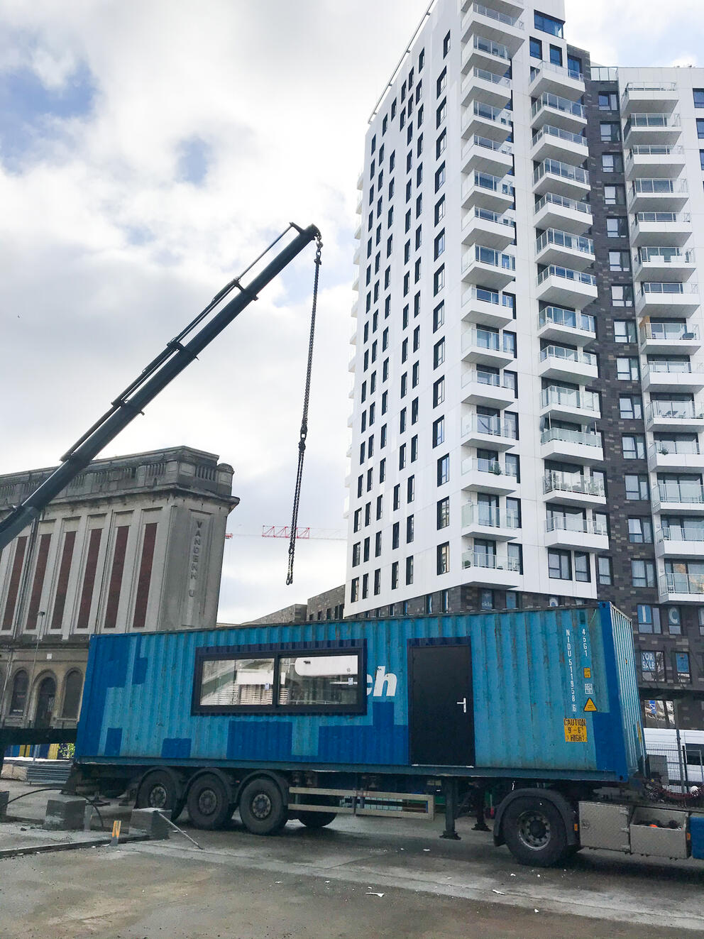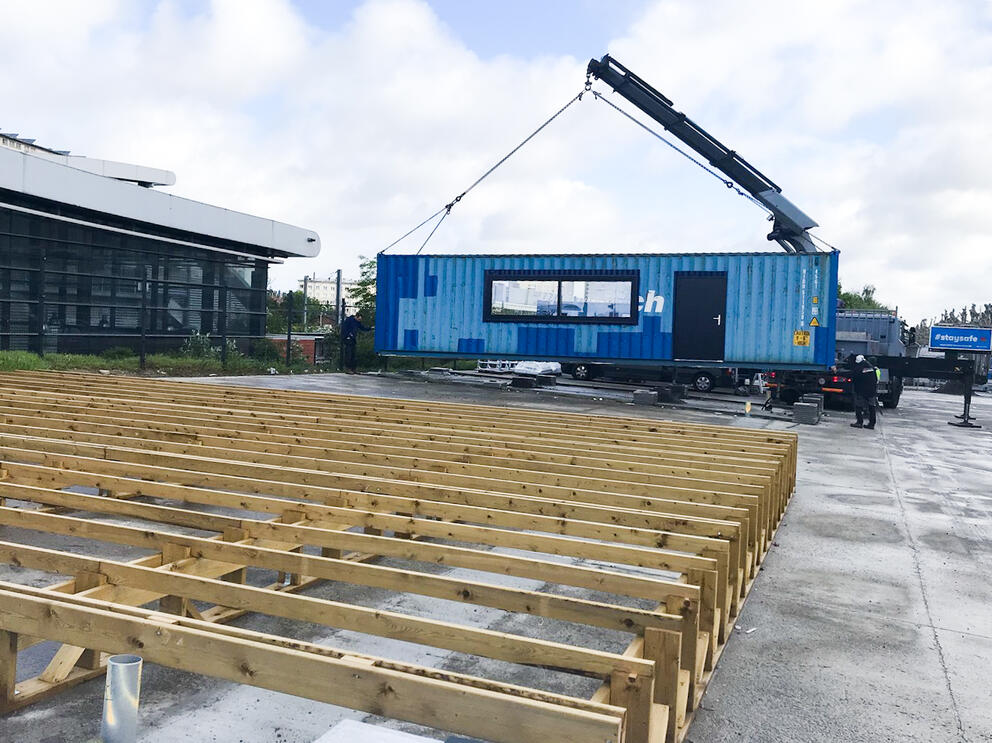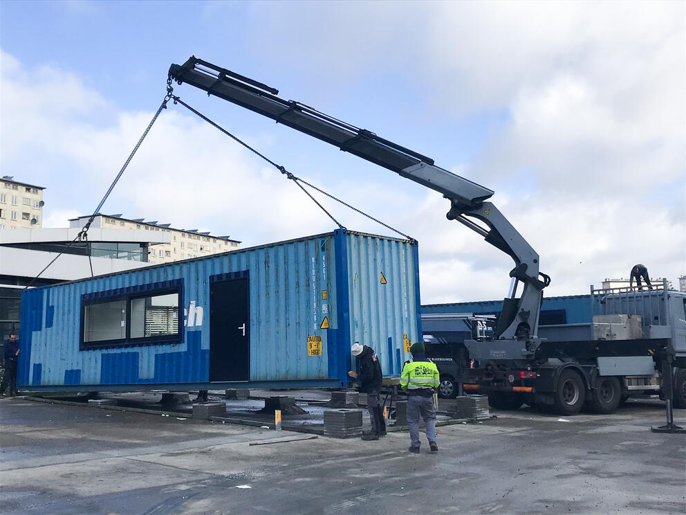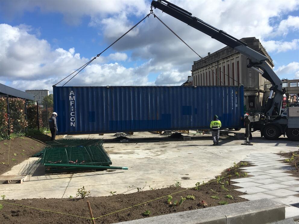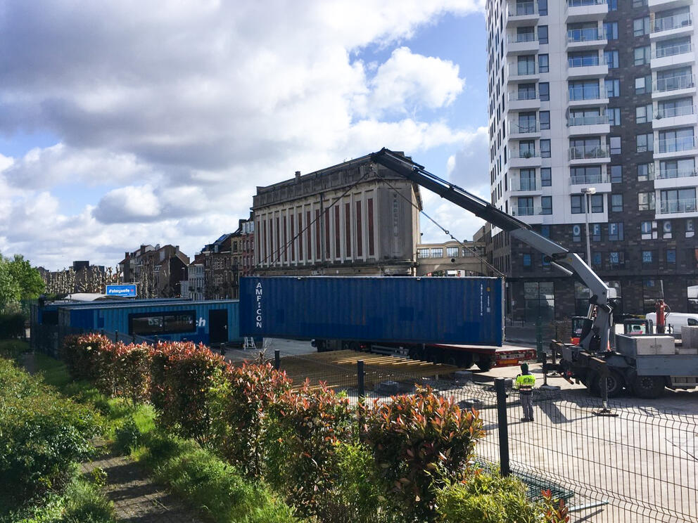 De containers voor de activiteiten van de verenigingen zijn geplaatst op het terrein van het gewest net naast het Weststation, waarvan de MSI begin maart is gestart met de ontwikkeling.