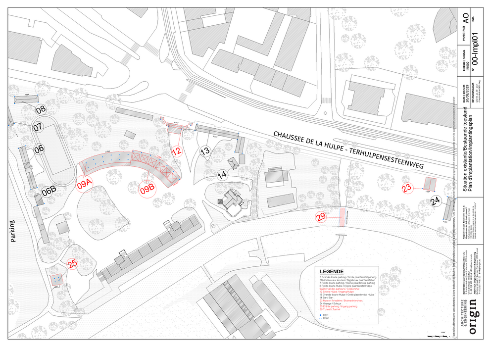 Deze tweede fase van de casco restauratie (gesloten ruwbouw) heeft betrekking op de gokkershal in beton (nummer 9A op het plan hiernaast), de gokkershal in metaal (9B), de ingang Hulpe (12), het boswachtershuis (23), de ingang Parking (25) en de tunnel (29).