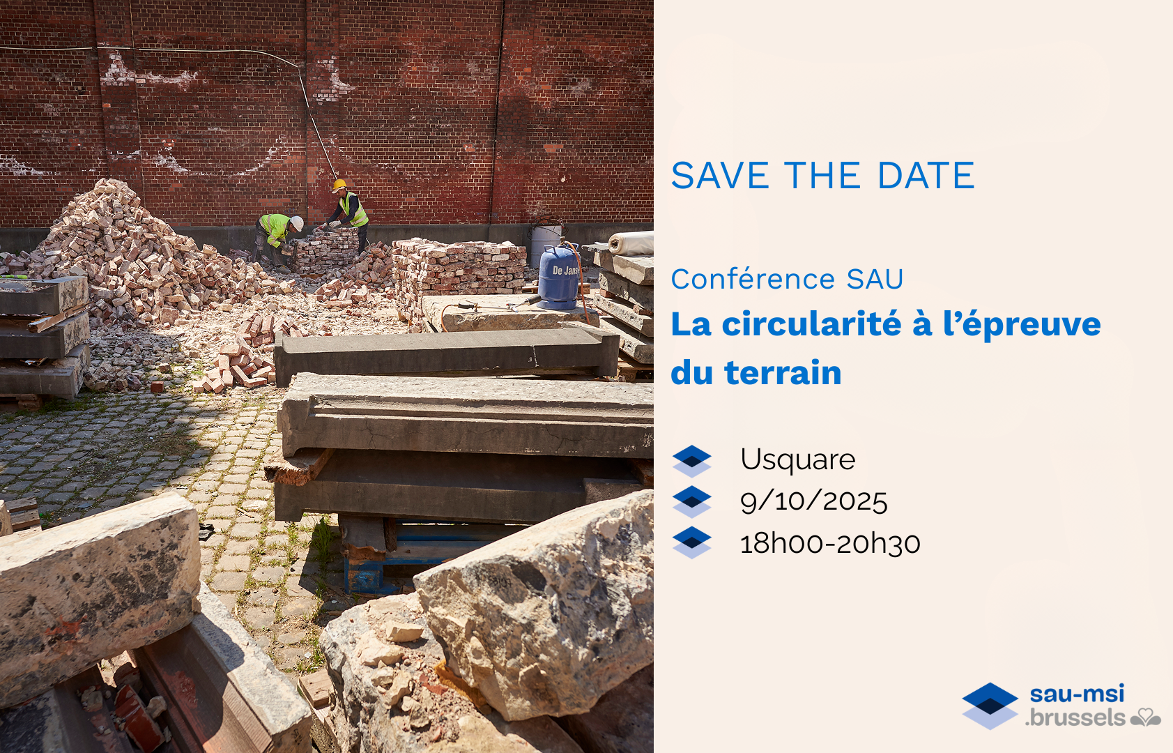 Deze conferentie kadert binnen de tentoonstelling “Materia”, georganiseerd door de MSI op de Usquare-site vanaf 2 oktober 2025. Deze tentoonstelling van het Pavillon de l’Arsenal, Les Grands Ateliers, amàco et les Compagnons du Devoir is gewijd aan hedendaagse architectuur in aarde, steen en plantaardige vezels. In dit kader worden ook tal van activiteiten georganiseerd door de Maatschappij voor Stedelijke Inrichting (MSI), de ULB, de VUB, vzw Wonder Meï en de bewoners van Ur’square.