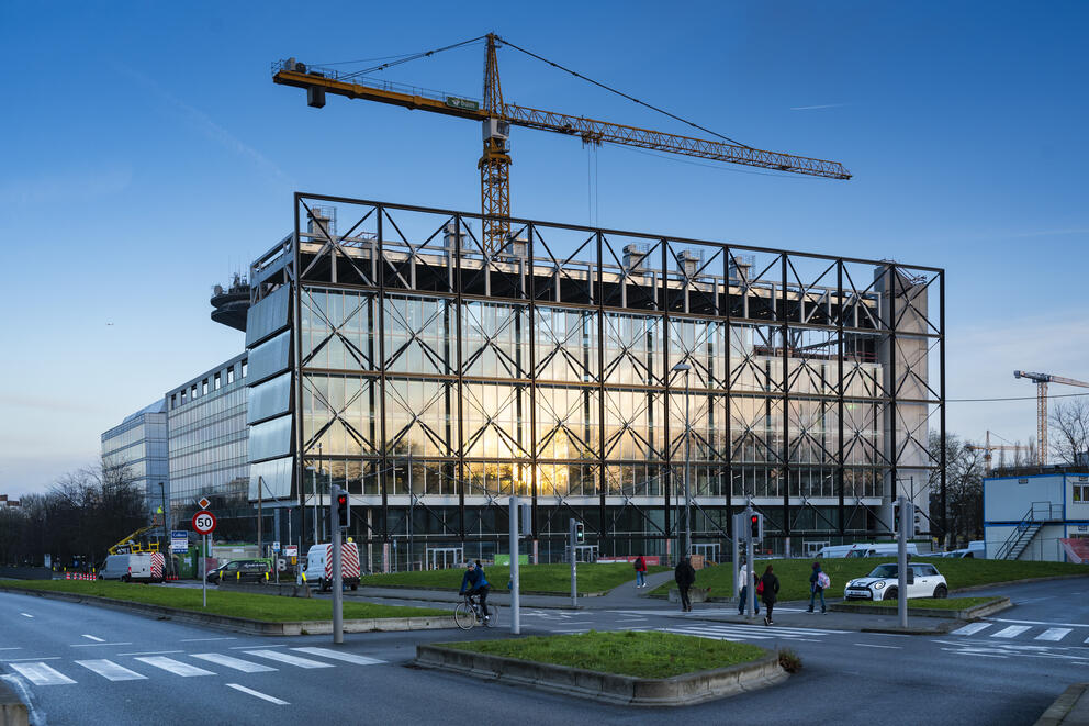 In 2024 is de ruwbouw voltooid. Dit betekent het einde van een belangrijke fase in de bouw: de tijdelijke structuren verdwijnen en maken plaats voor de gedurfde architectuur van het gebouw. De opdracht voor de uitbating van het bedrijvencentrum wordt gelanceerd om op de benedenverdieping en de eerste verdieping van het FRAME-gebouw een ‘Media’-ecosysteem te creëren. Daarnaast zijn meerdere verdiepingen klaar om te worden verhuurd aan bedrijven uit de media- en communicatiesector. BX1 van zijn kant zal twee verdiepingen innemen en bevestigt zo zijn verankering in dit nieuwe innovatieve ecosysteem. De opening is gepland voor de zomer van 2025!